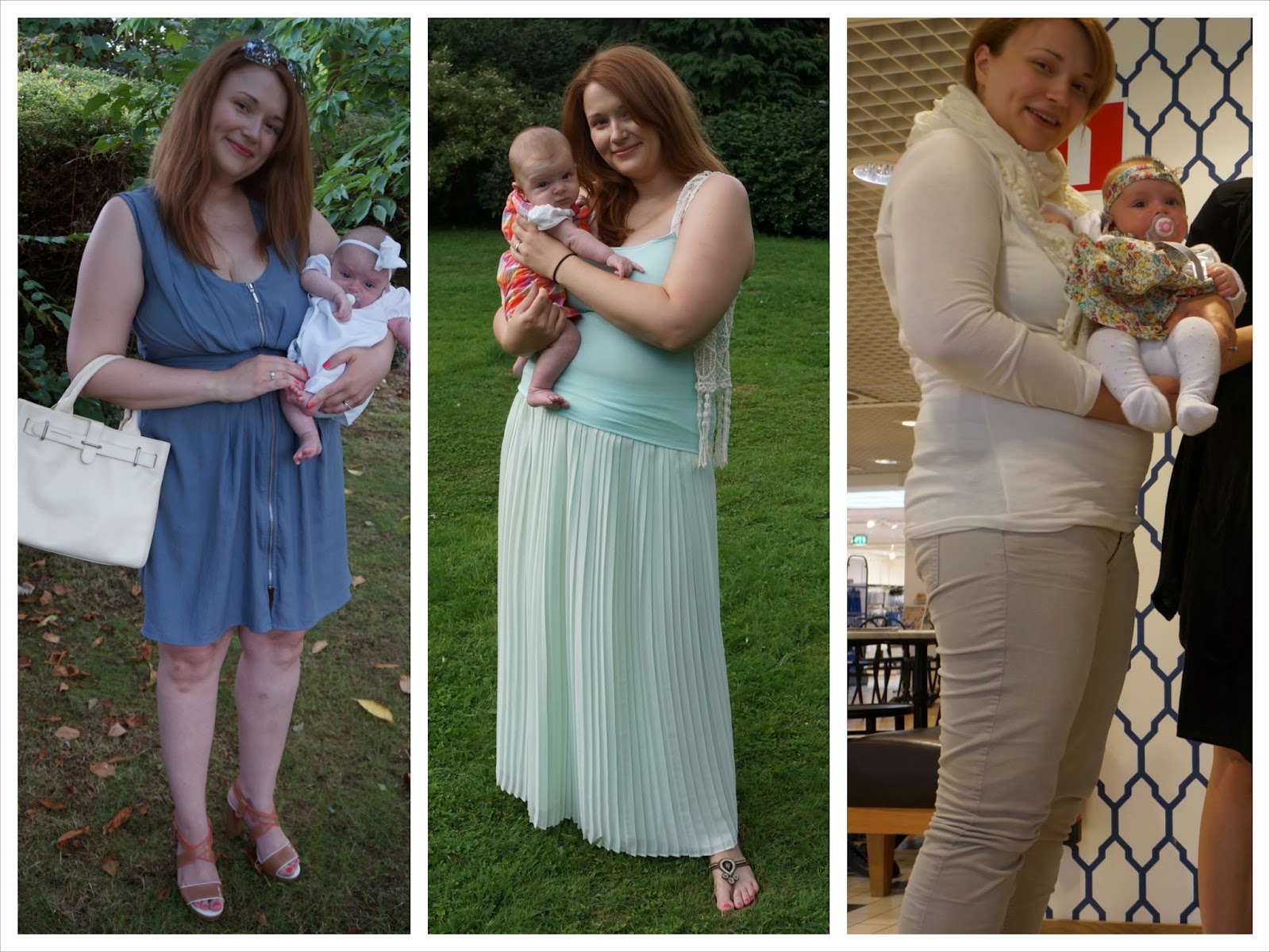 Mekkoja innostuin käyttämään tänä vuonna aika paljon. Niitä harvoin käytän, mutta näyttävät sen verran kivoilta että niitä saisi löytyä päivänasuista useamminkin. Nanson maksimekko (vasemmalla) on muutaman vuoden vanha, mutta Mangon minttuinen vekkihame ja H&M:n vetskarimekko olivat viime kesän ostoksia.